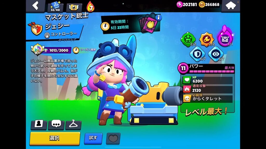 ジェシーのハイパーチャージは連射性能が上がるため、このスキンを使うことでより爽快感のあるプレイが楽しめます。
