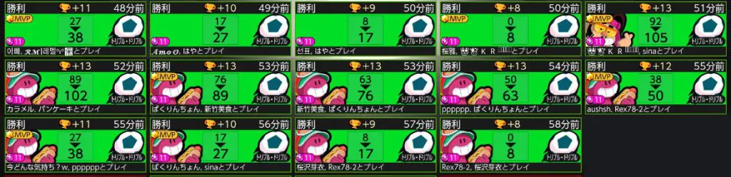 結果は、10分間で14勝することができ、キャンディーを98個ゲットできました!