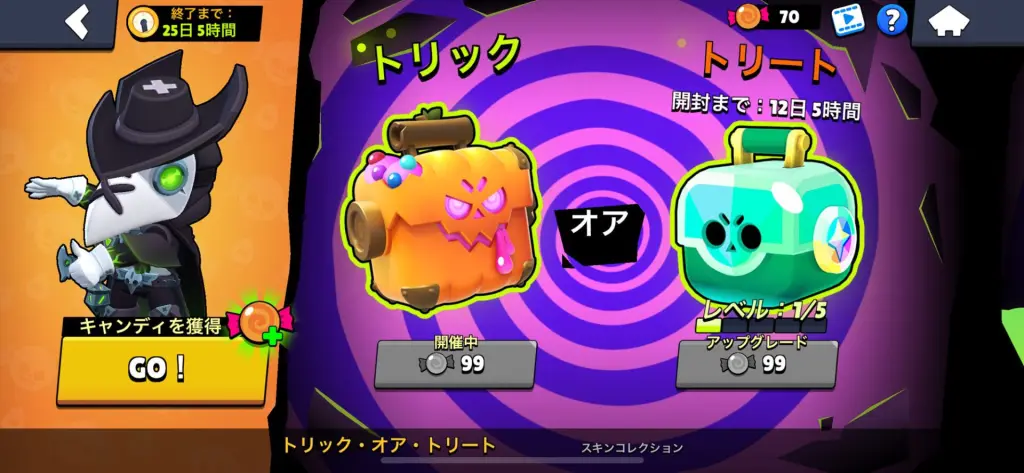 まずトロフィーボックスを最大までグレードアップしてから残りのキャンディーで今しか引けないパンプキンボックスを引くのがオススメ!