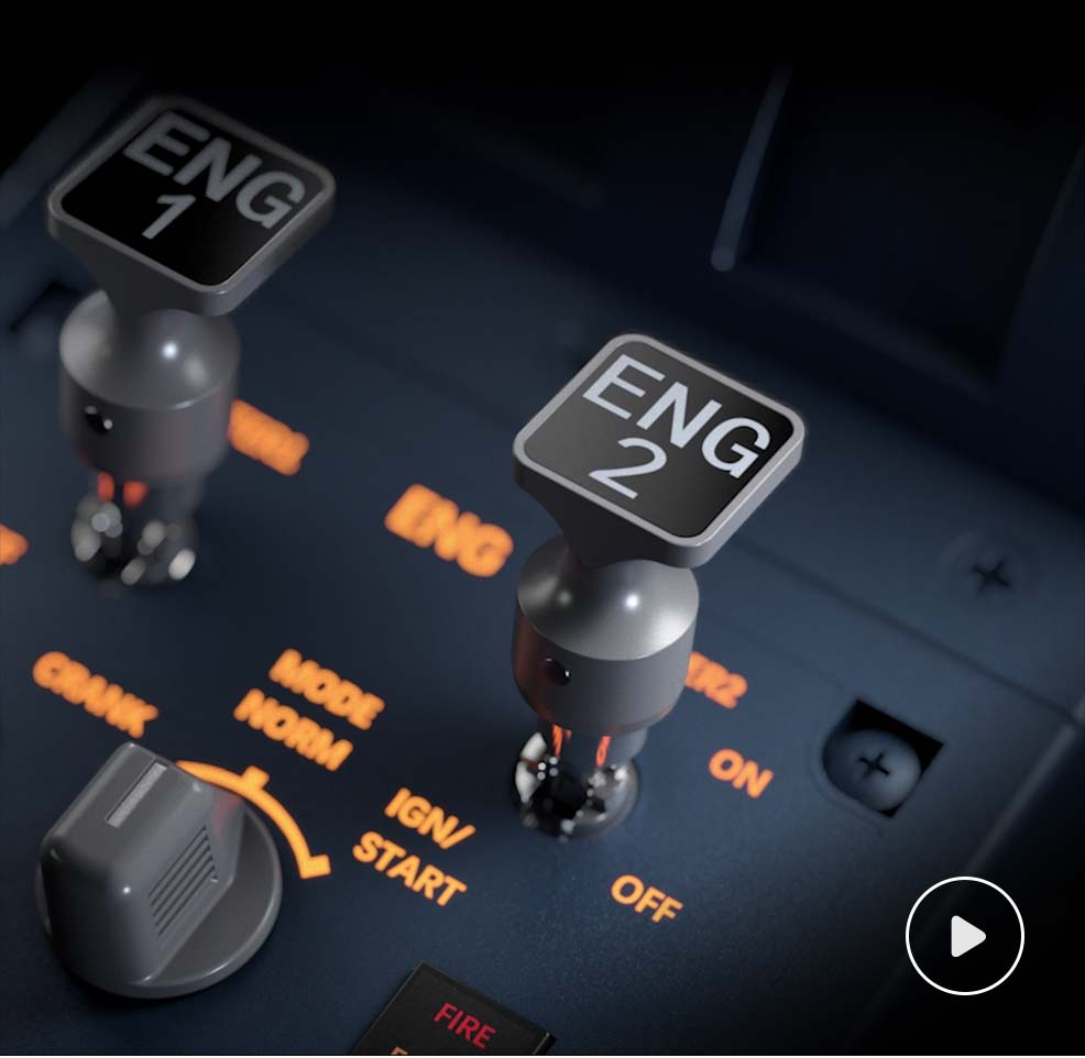 エンジン始動に使うエンジンマスタースイッチは、実機と同じように「少し上に引いてから前に倒す」という動作が再現されています。