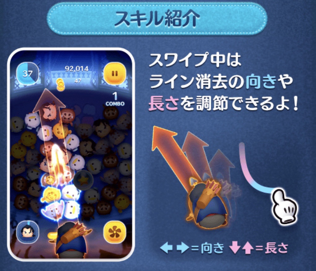 スキル | 画面スワイプでライン状にツムを消すよ! |