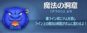 スキル横ライン状にツムを消しライン上の魔法の洞窟がボムに変わるよ!