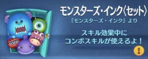 このページでは、「モンスターズ・インク〈セット〉(以下モンインセット)」の評価・使い方・スキル効果・コイン稼ぎ・適正ミッション・スキルチケット優先度などを紹介しています。