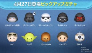 今回のスターウォーズピックアップは27日登場・28日まで開催の予定です。 そのため、28日の終了後に新しいガチャ情報が更新され、29日から2日間限定でGWセレボが開催されるという可能性がゼロではないとのこと。