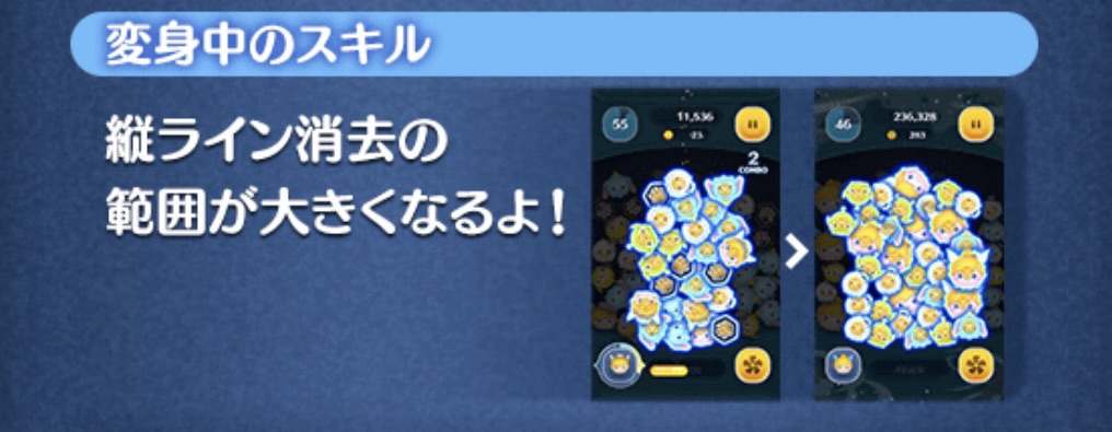 | スキル | 縦ライン状にツムを消すよ! |