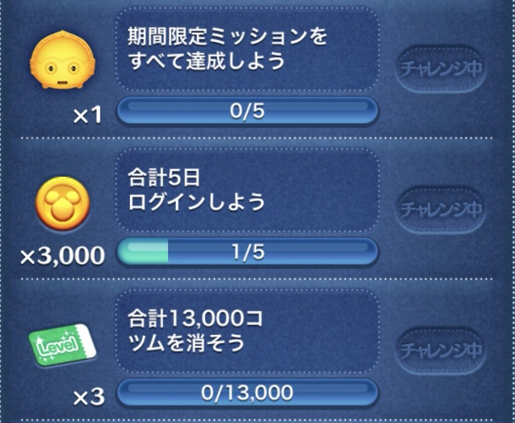 このミッションをクリアすることで、超レアツムであるC3POを入手できるとのことです。C3POはサブツムとして機能するタイプではないため、プレイに直接影響するわけではありませんが、コレクション価値が非常に高いツムです。