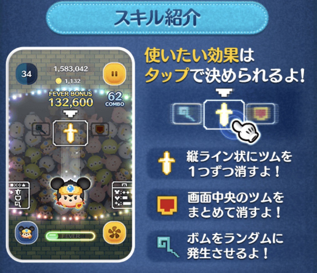 | スキル | タップでコマンドを選択 効果を3種類から選べるよ! |